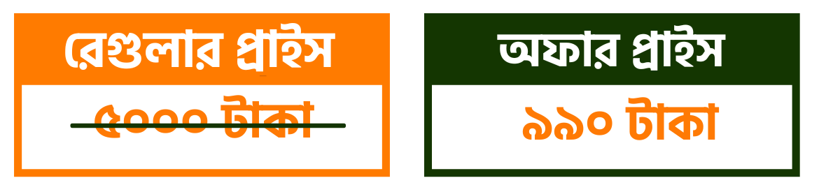 বর্তমানে বিশাল ডিস্কাউন্ট দেয়া আছে তবে প্রতিনিয়ত প্রোগ্রামটির মূল্য কিছু কিছু করে বাড়ানো হবে। তাই যত দ্রুত যুক্ত হবেন তত বেশি আপনারই লাভ। আর টাকা কিভাবে বাঁচাবেন সেটা চিন্তা না করে চিন্তা করুন কিভাবে টাকা বেশি ইনকাম করবেন, যাতে পরবর্তী সময়ে আর কখনো কোথাও ডিস্কাউন্ট চাইতে না হয়।